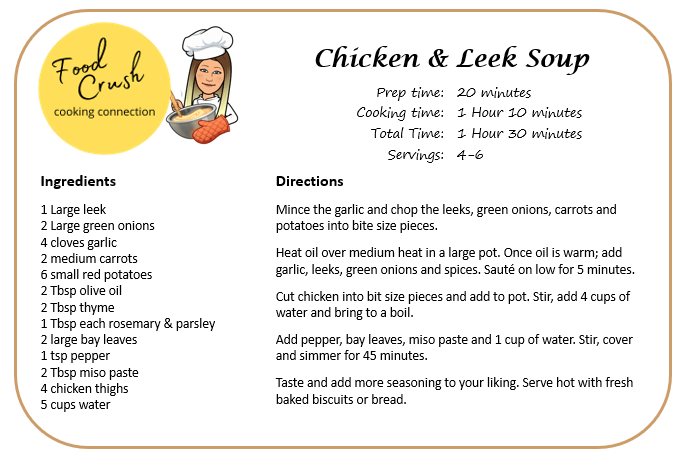 If you’re feeling adventurous and want to learn how to make chicken and leek soup, read on! I’ve included a recipe at the end so you can make it yourself.